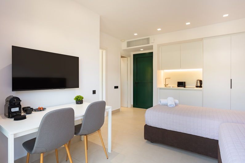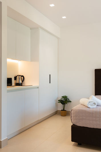 A spacious and thoughtfully designed apartment with a separate bedroom and living area, offering added privacy and comfort for couples, friends, or families with adult children.
